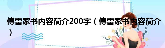 傅雷家书内容简介200字(傅雷家书内容简介)