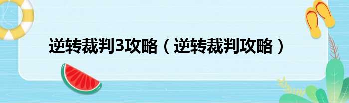逆转裁判3攻略(逆转裁判攻略)