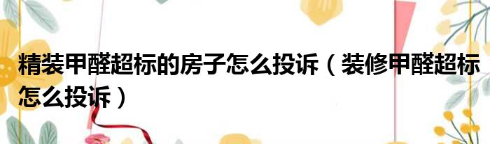 精装甲醛超标的房子怎么投诉(装修甲醛超标怎么投诉)