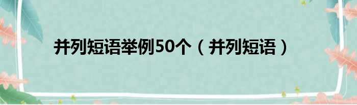 导读 大家好,今天小六子来为大家解答以下的问题,关于并列短语举例50个,并列短语这个很多人还不知道,现在让我们一起来看看吧!1、你知道并列短