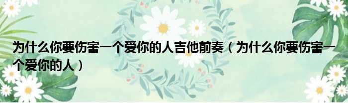 导读 大家好,今天小六子来为大家解答以下的问题,关于为什么你要伤害一个爱你的人吉他前奏,为什么你要伤害一个爱你的人这个很多人还不知道,现