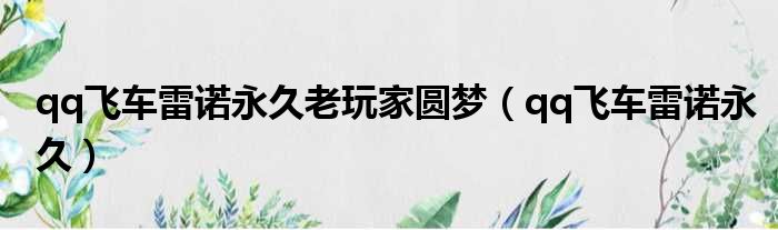 qq飞车雷诺永久老玩家圆梦(qq飞车雷诺永久)
