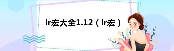 大家好,今天小六子来为大家解答以下的问题,关于lr宏大全1.12,lr宏这个很多人还不知道,现在让我们一起来看看吧!