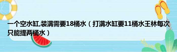 导读 大家好,今天小六子来为大家解答以下的问题,关于一个空水缸,装满需要18桶水,打满水缸要11桶水王林每次只能提两桶水这个很多人还不知道,现