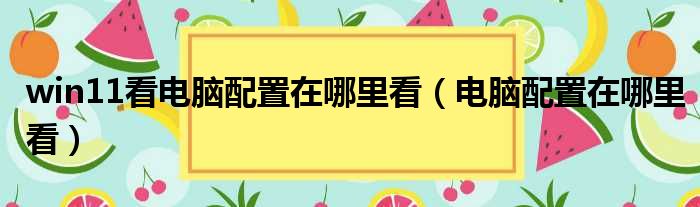 win11看电脑配置在哪里看(电脑配置在哪里看)