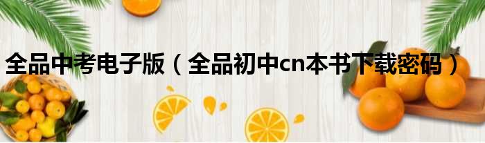 全品中考电子版(全品初中cn本书下载密码)