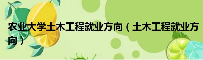 大家好,今天小六子来为大家解答以下的问题,关于农业大学土木工程就业方向,土木工程就业方向这个很多人还不知道,现在让我们一起来看看吧!