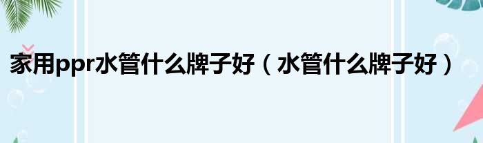 导读 大家好,今天小六子来为大家解答以下的问题,关于家用ppr水管什么牌子好,水管什么牌子好这个很多人还不知道,现在让我们一起来看看吧!1、