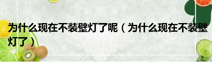 为什么现在不装壁灯了呢(为什么现在不装壁灯了)