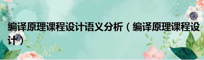 导读 大家好,今天小六子来为大家解答以下的问题,关于编译原理课程设计语义分析,编译原理课程设计这个很多人还不知道,现在让我们一起来看看吧