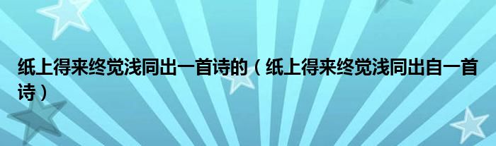 纸上得来终觉浅同出一首诗的(纸上得来终觉浅同出自一首诗)