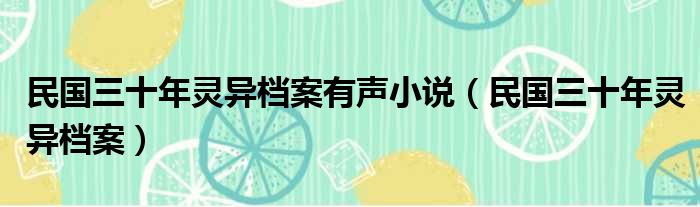 民国三十年灵异档案有声小说(民国三十年灵异档案)