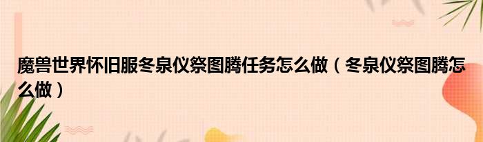 魔兽世界怀旧服冬泉仪祭图腾任务怎么做(冬泉仪祭图腾怎么做)