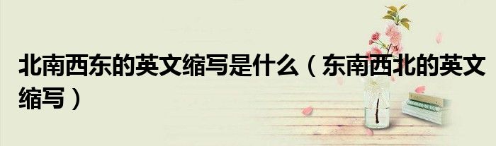 导读 大家好,今天小六子来为大家解答以下的问题,关于北南西东的英文缩写是什么,东南西北的英文缩写这个很多人还不知道,现在让我们一起来看看