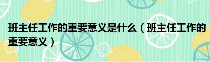 班主任工作的重要意义是什么(班主任工作的重要意义)
