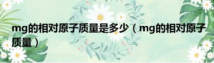 导读 大家好,今天小六子来为大家解答以下的问题,关于mg的相对原子质量是多少,mg的相对原子质量这个很多人还不知道,现在让我们一起来看看吧!1