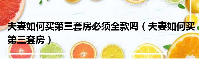 夫妻如何买第三套房必须全款吗(夫妻如何买第三套房)