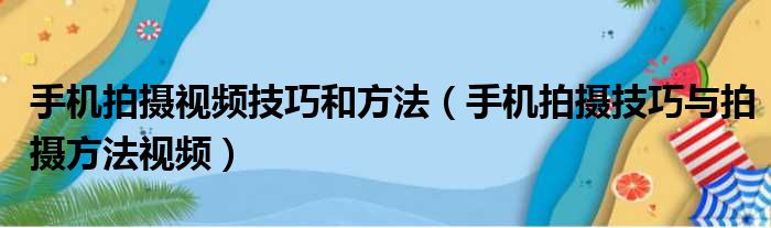 手机拍摄视频技巧和方法(手机拍摄技巧与拍摄方法视频)