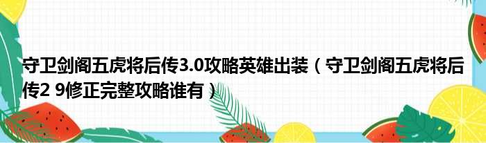 守卫剑阁五虎将后传3.0攻略英雄出装(守卫剑阁五虎将后传2 9修正完整攻略谁有)