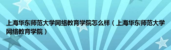 上海华东师范大学网络教育学院怎么样(上海华东师范大学网络教育学院)