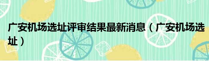 导读 大家好,今天小六子来为大家解答以下的问题,关于广安机场选址评审结果最新消息,广安机场选址这个很多人还不知道,现在让我们一起来看看吧