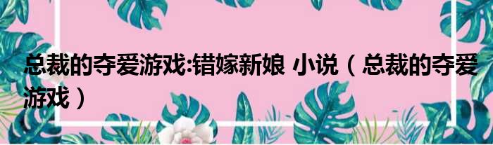 总裁的夺爱游戏:错嫁新娘 小说(总裁的夺爱游戏)