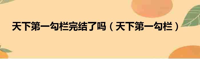 天下第一勾栏完结了吗(天下第一勾栏)