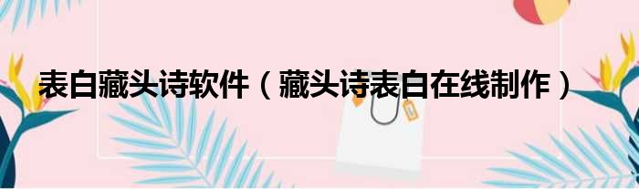 大家好,今天小六子来为大家解答以下的问题,关于表白藏头诗软件,藏头诗表白在线制作这个很多人还不知道,现在让我们一起来看看吧!
