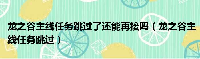 龙之谷主线任务跳过了还能再接吗(龙之谷主线任务跳过)
