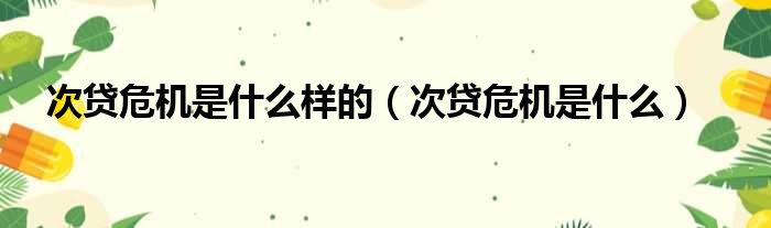 导读 大家好,今天小六子来为大家解答以下的问题,关于次贷危机是什么样的,次贷危机是什么这个很多人还不知道,现在让我们一起来看看吧!1、次贷