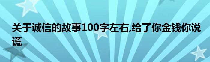 大家好,今天小六子来为大家解答以下的问题,关于关于诚信的故事100字左右,给了你金钱你说谎这个很多人还不知道,现在让我们一起来看看吧!