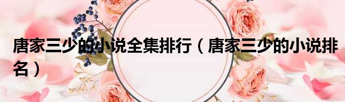 唐家三少的小说全集排行(唐家三少的小说排名)