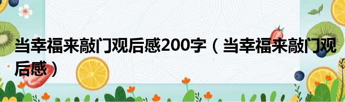 当幸福来敲门观后感200字(当幸福来敲门观后感)