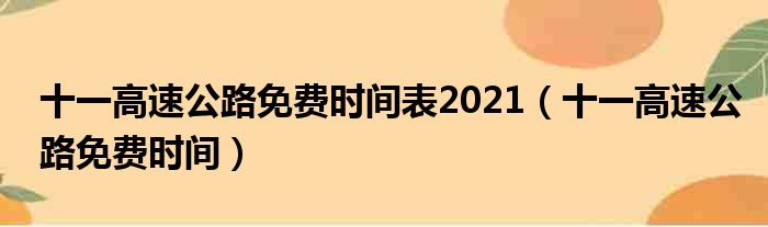 十一高速公路免费时间表2021(十一高速公路免费时间)