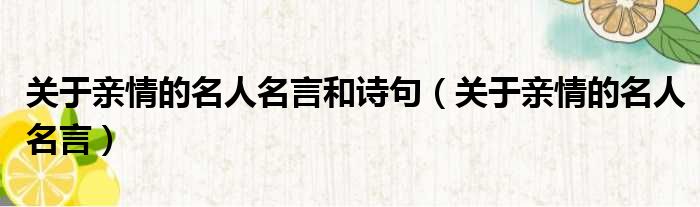 关于亲情的名人名言和诗句(关于亲情的名人名言)