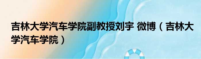 导读 大家好,今天小六子来为大家解答以下的问题,关于吉林大学汽车学院副教授刘宇 微博,吉林大学汽车学院这个很多人还不知道,现在让我们一起