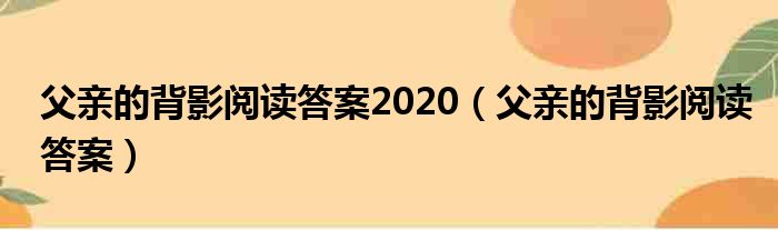 父亲的背影阅读答案2020(父亲的背影阅读答案)