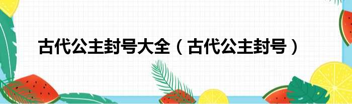 大家好,今天小六子来为大家解答以下的问题,关于古代公主封号大全,古代公主封号这个很多人还不知道,现在让我们一起来看看吧!