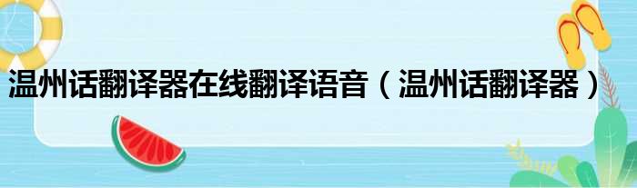 温州话翻译器在线翻译语音(温州话翻译器)