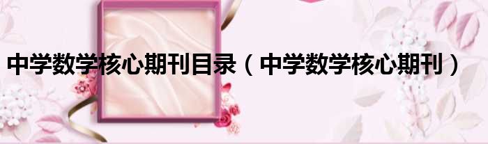 大家好,今天小六子来为大家解答以下的问题,关于中学数学核心期刊目录,中学数学核心期刊这个很多人还不知道,现在让我们一起来看看吧!
