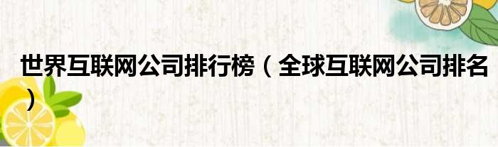 导读 大家好,今天小六子来为大家解答以下的问题,关于世界互联网公司排行榜,全球互联网公司排名这个很多人还不知道,现在让我们一起来看看吧!1