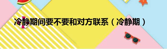 导读 大家好,今天小六子来为大家解答以下的问题,关于冷静期间要不要和对方联系,冷静期这个很多人还不知道,现在让我们一起来看看吧!1、冷静半