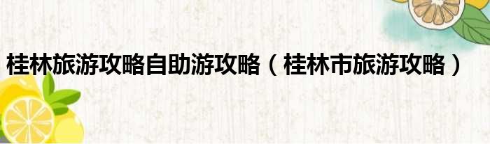 桂林旅游攻略自助游攻略(桂林市旅游攻略)
