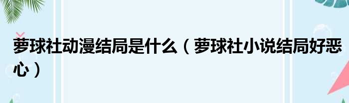 萝球社动漫结局是什么(萝球社小说结局好恶心)