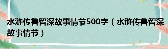 水浒传鲁智深故事情节500字(水浒传鲁智深故事情节)