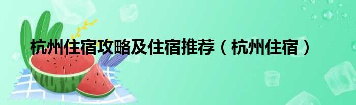 杭州住宿攻略及住宿推荐(杭州住宿)