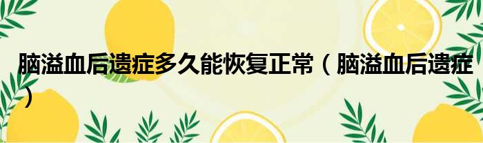 脑溢血后遗症多久能恢复正常(脑溢血后遗症)