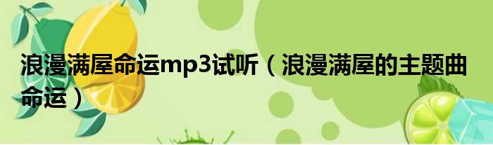 浪漫满屋命运mp3试听(浪漫满屋的主题曲 命运)