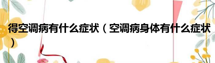 导读 大家好,今天小六子来为大家解答以下的问题,关于得空调病有什么症状,空调病身体有什么症状这个很多人还不知道,现在让我们一起来看看吧!1