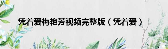 导读 大家好,今天小六子来为大家解答以下的问题,关于凭着爱梅艳芳视频完整版,凭着爱这个很多人还不知道,现在让我们一起来看看吧!1、《凭着爱